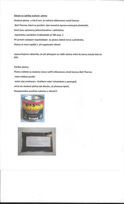 Upozorňujeme zákazníky, že při přetopení plotny se černá silikónová barva mění do holubí šedi.