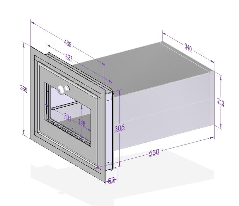 Trouba pečící prosklená o rozměru š430 x v310 x hl535, vnější rozměr š485 x v365 x hl 535.